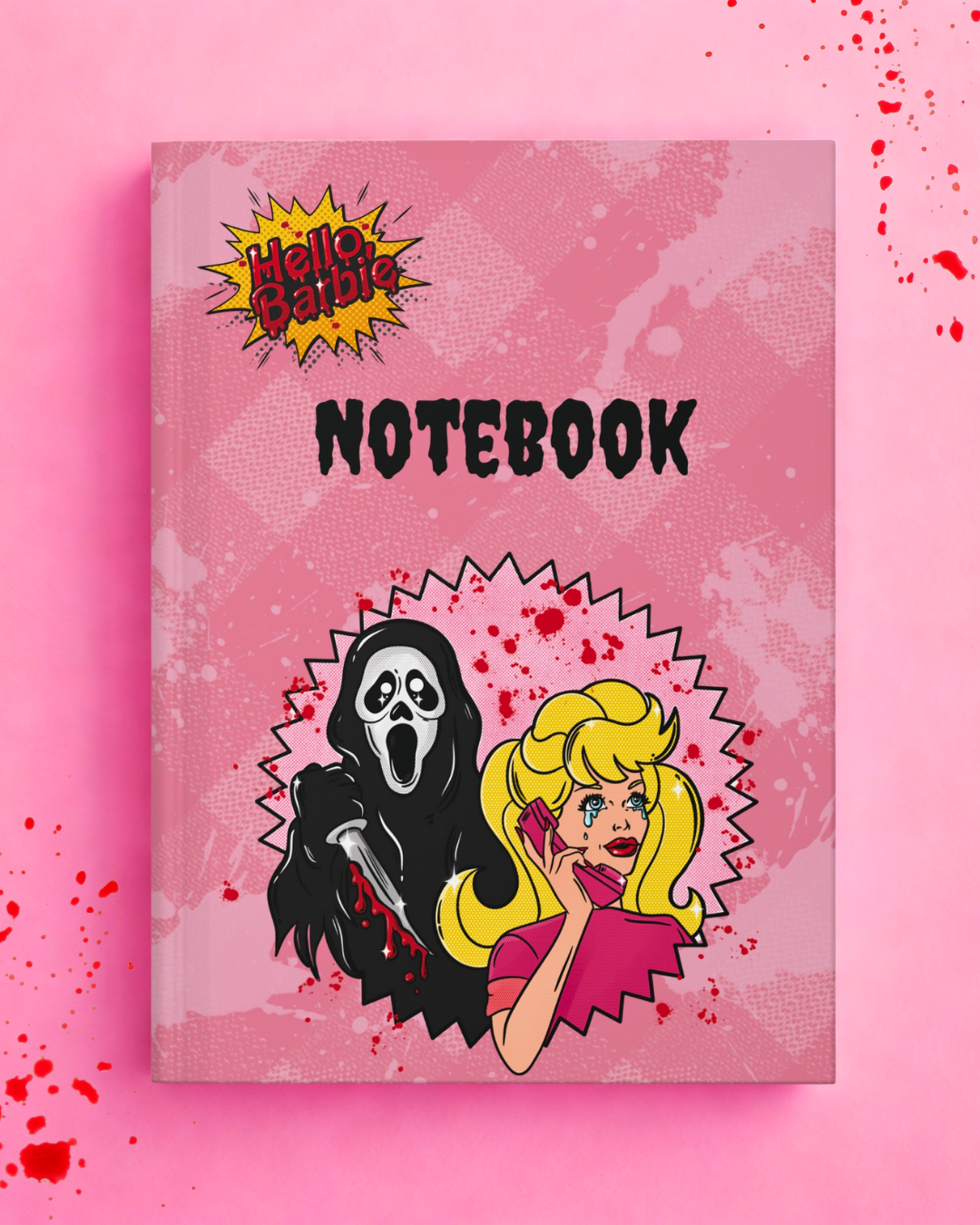 This lined hardcover Journal is perfect for those who love horror and Barbie or are fans of quirky stationery. Ideal for jotting down thoughts, sketches, or to-do lists.